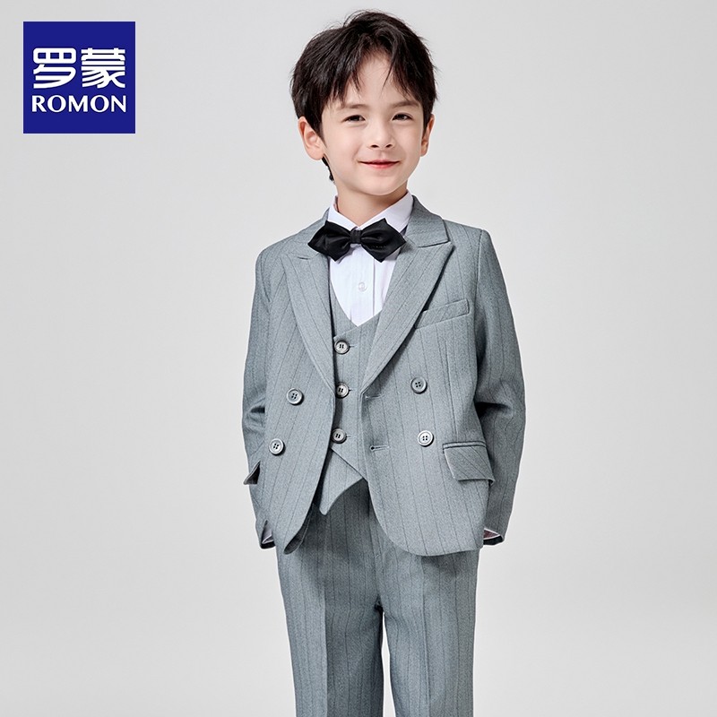 罗蒙男童西装套装帅气英伦男孩主持人演出服花童礼服婚礼儿童西服