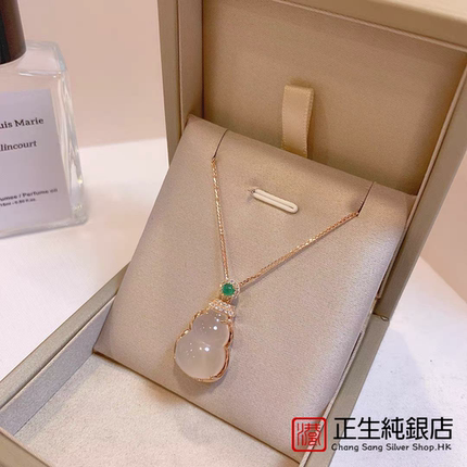 香港正生s925纯银白玉髓福禄项链高级感轻奢设计送长辈母亲节礼物