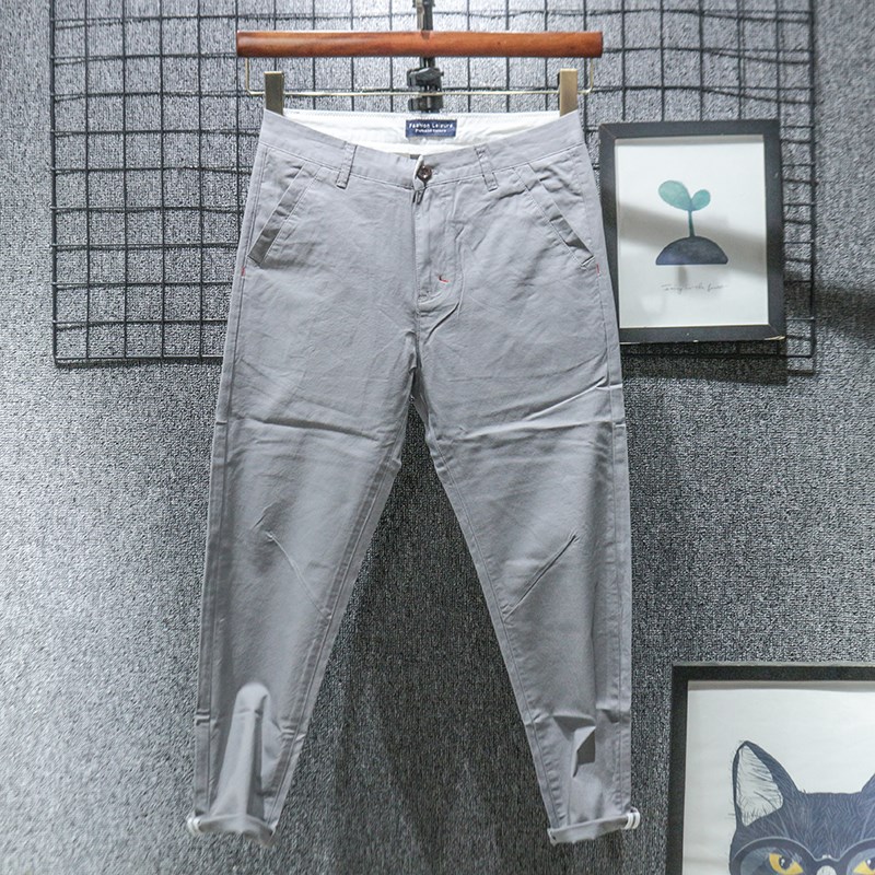 纯棉九分休闲裤男士修身直筒矮个子布裤八分春秋款夏季黑色裤子