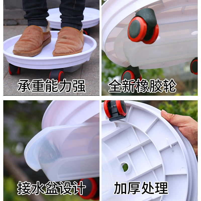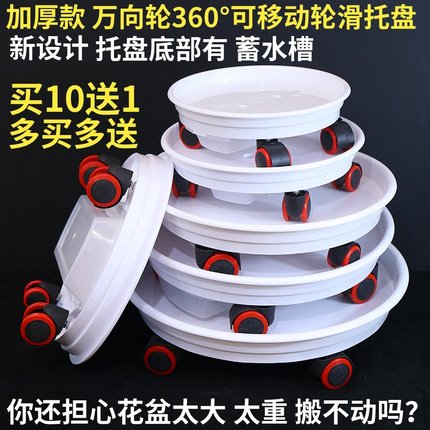 极速万向轮可移动托盘加厚塑料托盘圆形底座大陶瓷V花盆垫底带滚
