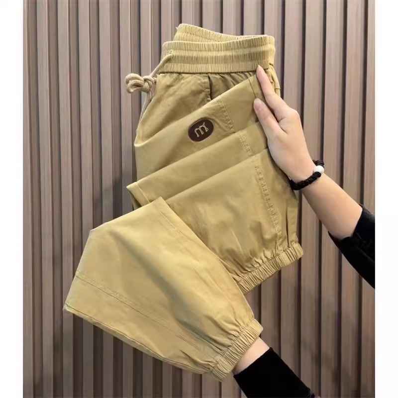 夏季男士冰丝速干休闲裤男装耐磨潮流潮牌宽松简约束脚运动长裤子