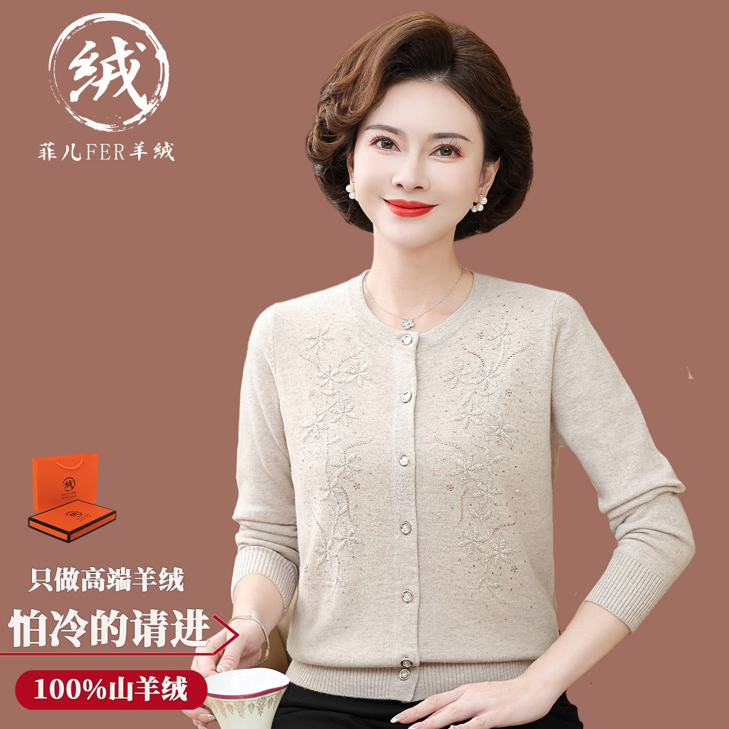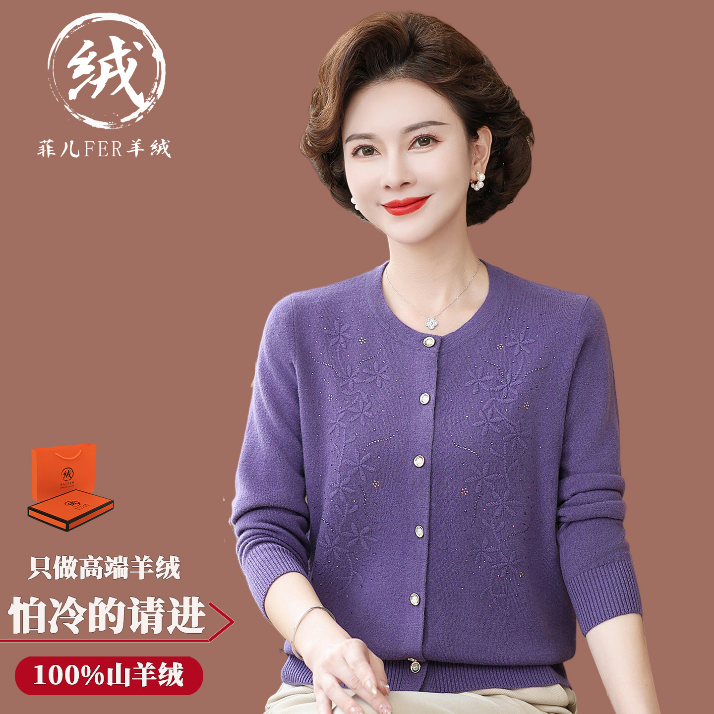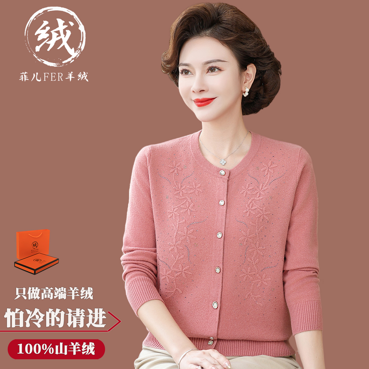鄂尔多斯市100%纯羊绒开衫圆领提花中老年针织衫秋冬保暖休闲毛衣