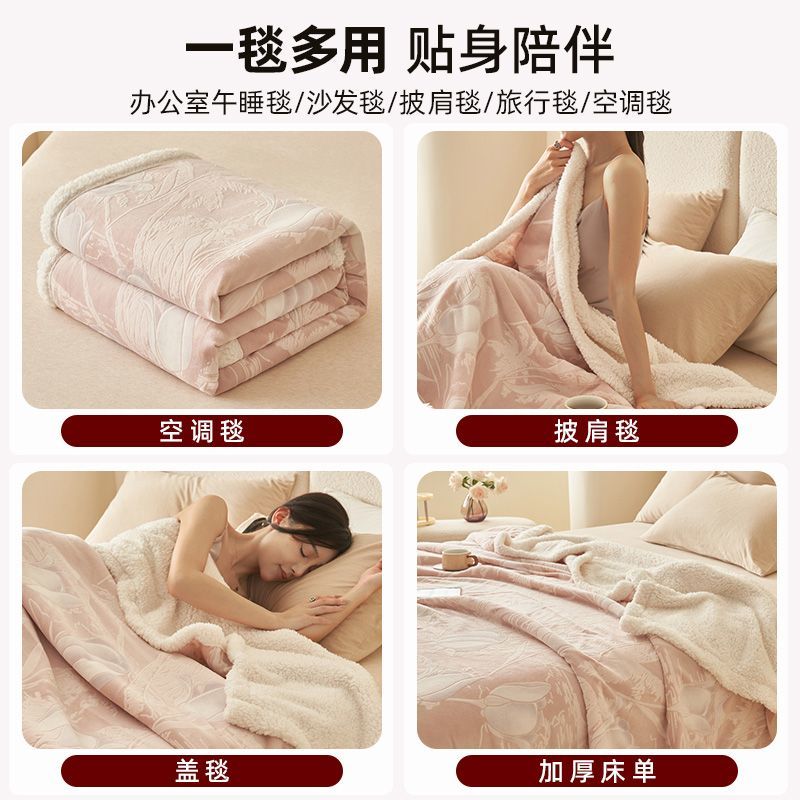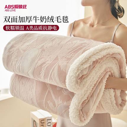 ABS秋冬新款高克重牛奶绒羊羔绒多功能加厚珊瑚绒毛毯沙发午睡毯