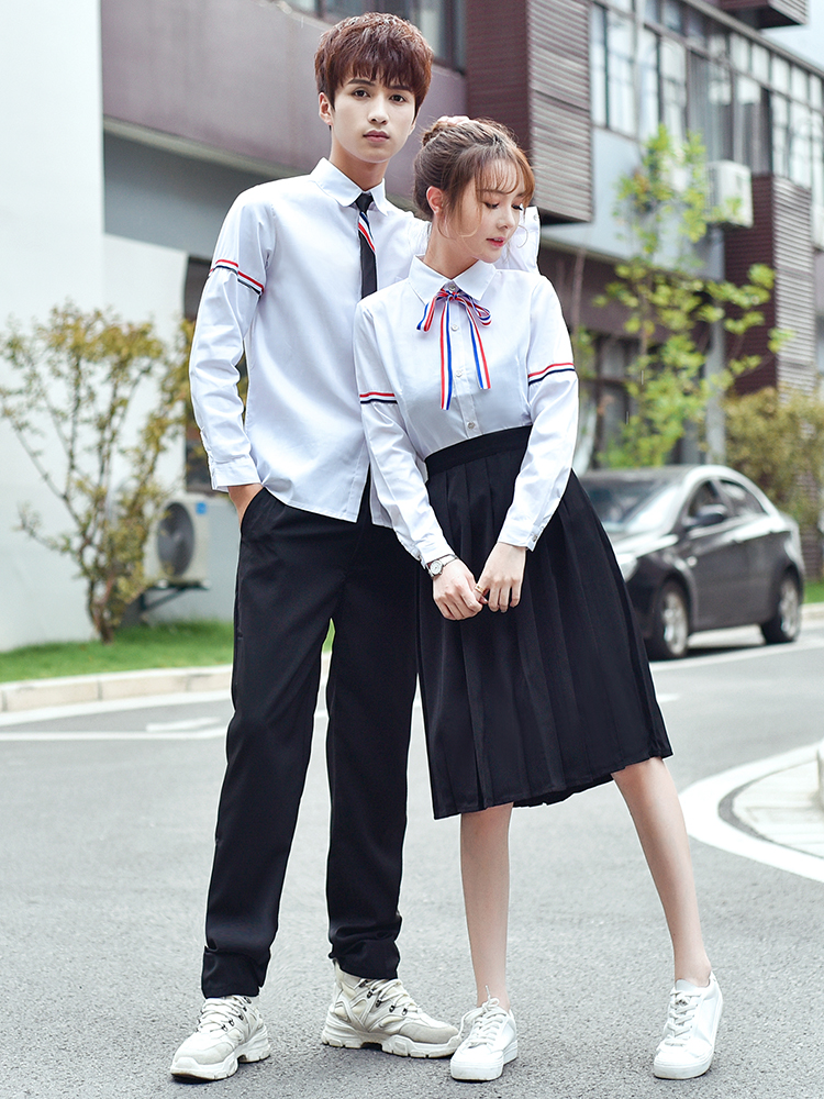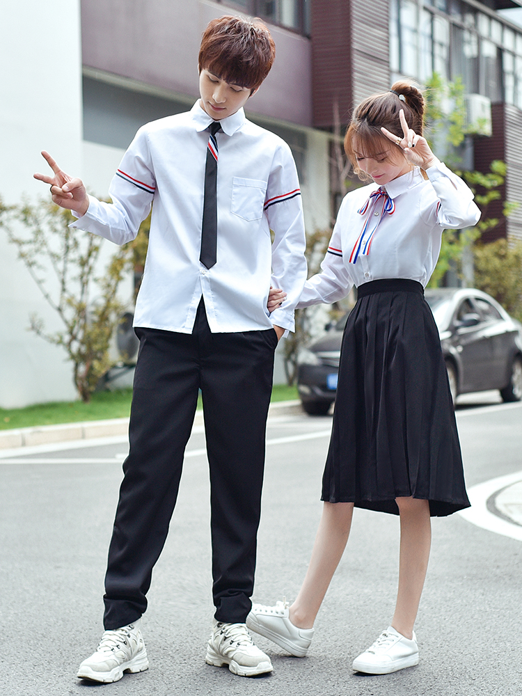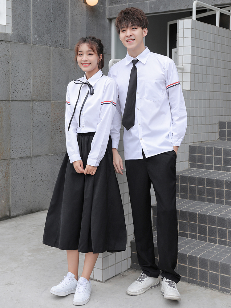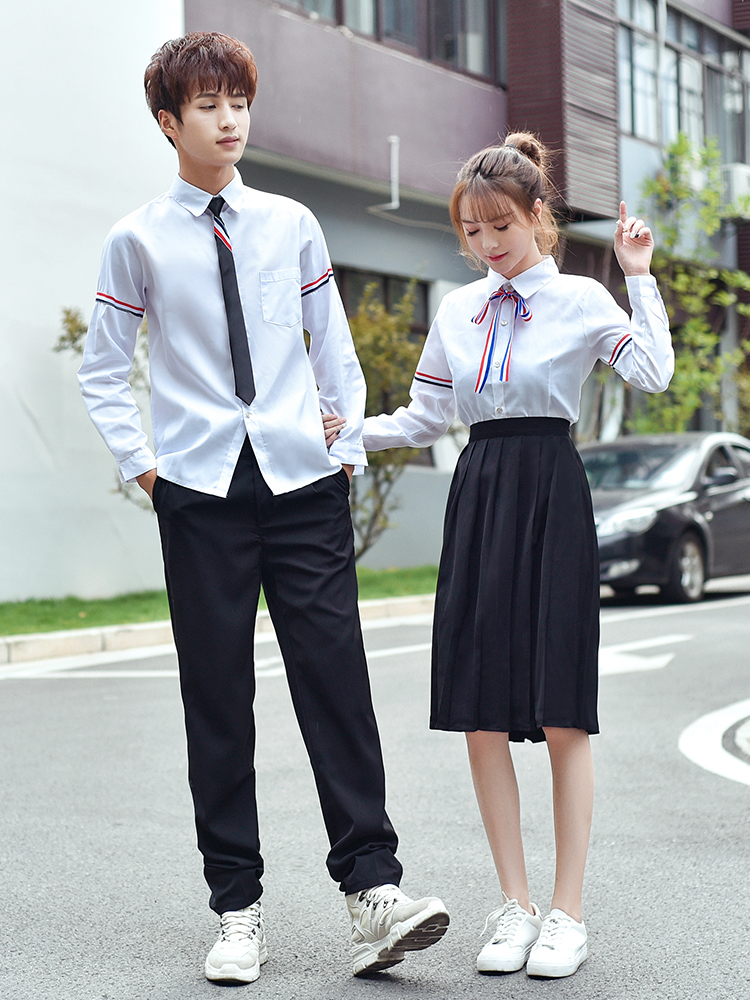 初高中学生男女同款情侣装春秋白色衬衫女学院风毕业班服两件套潮