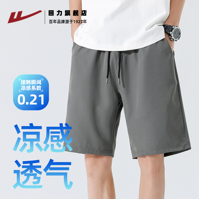 回力短裤男冰丝夏季2025新款垂感直筒五分裤外穿男士大码沙滩裤K