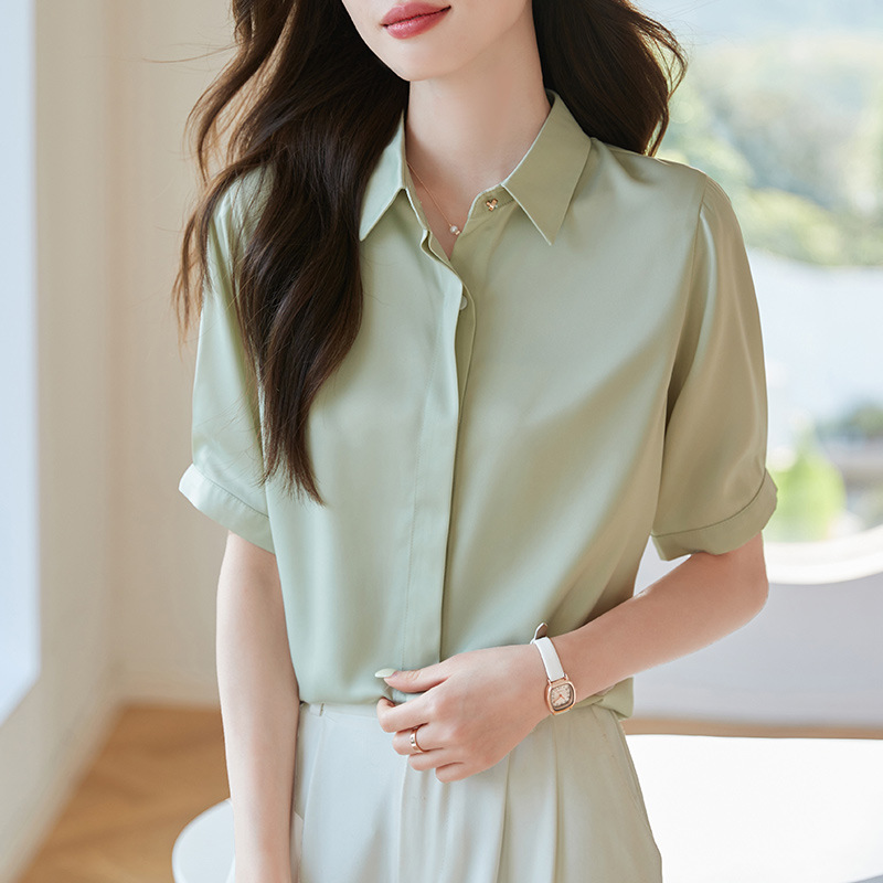 雪纺短袖白衬衫女士夏季2025新款法式别致职业通勤衬衣泡泡袖