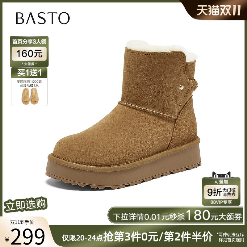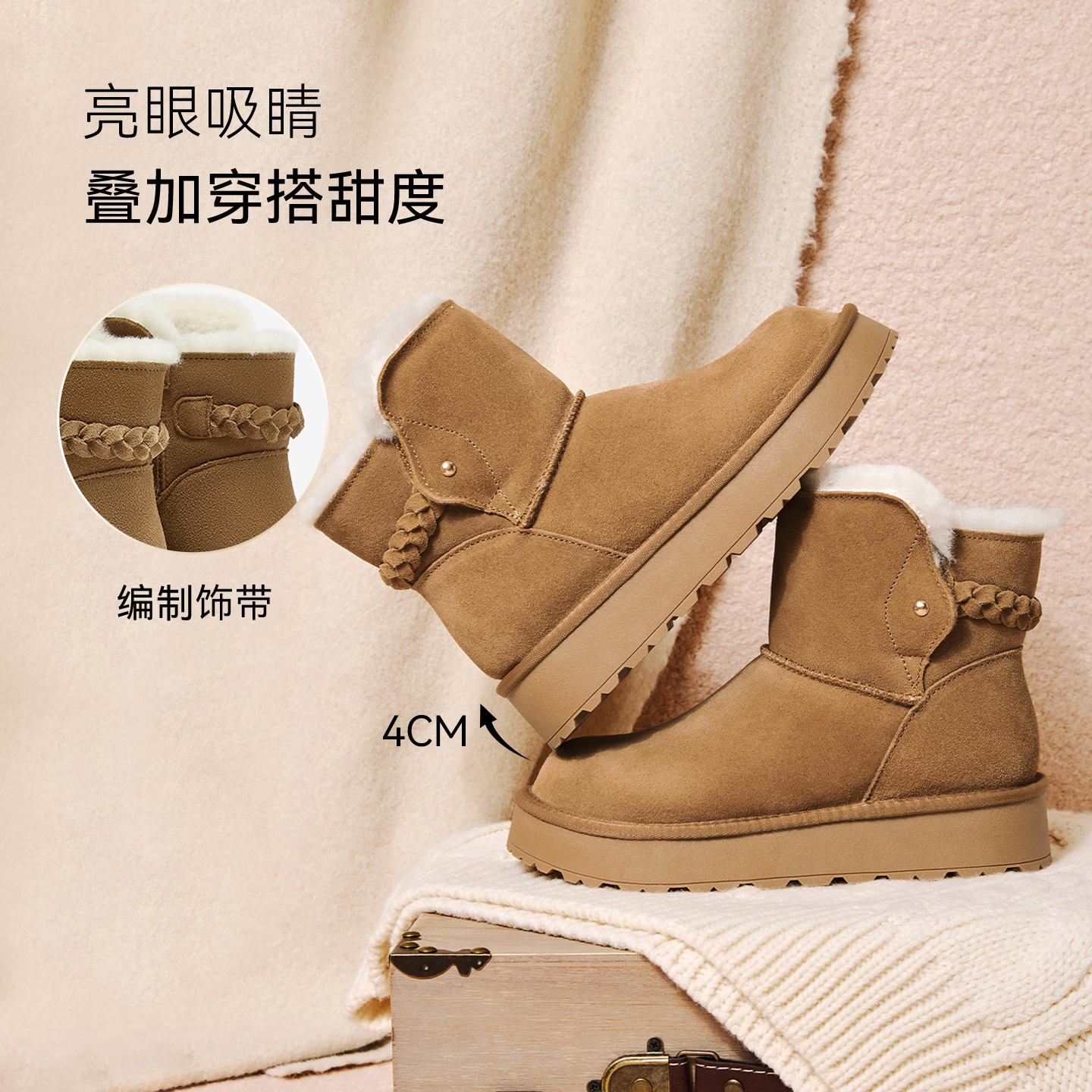 百思图2025冬季新款雪地靴时尚简约户外休闲女短靴DC725DD5