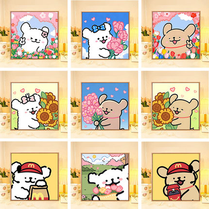 线条小狗数字油画diy填充填色手工绘卡通情侣丙烯油彩涂色装饰画