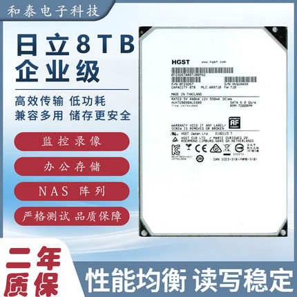 日立8T企业级机械硬盘7200转监控录像机点歌机台式机NAS机械盘8tb