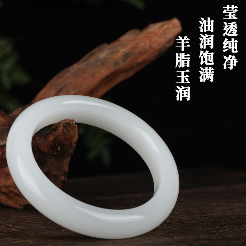 唐今玉天然和田玉白玉手镯女款白玉手镯玉镯女士气质冰透精美礼物