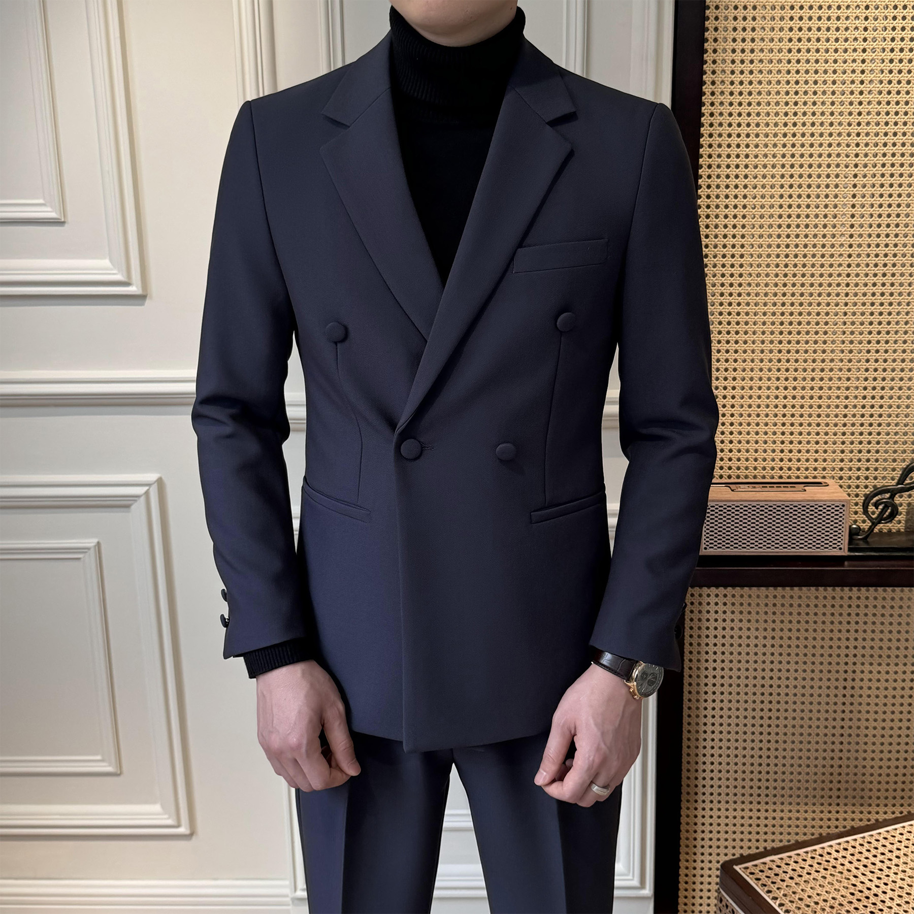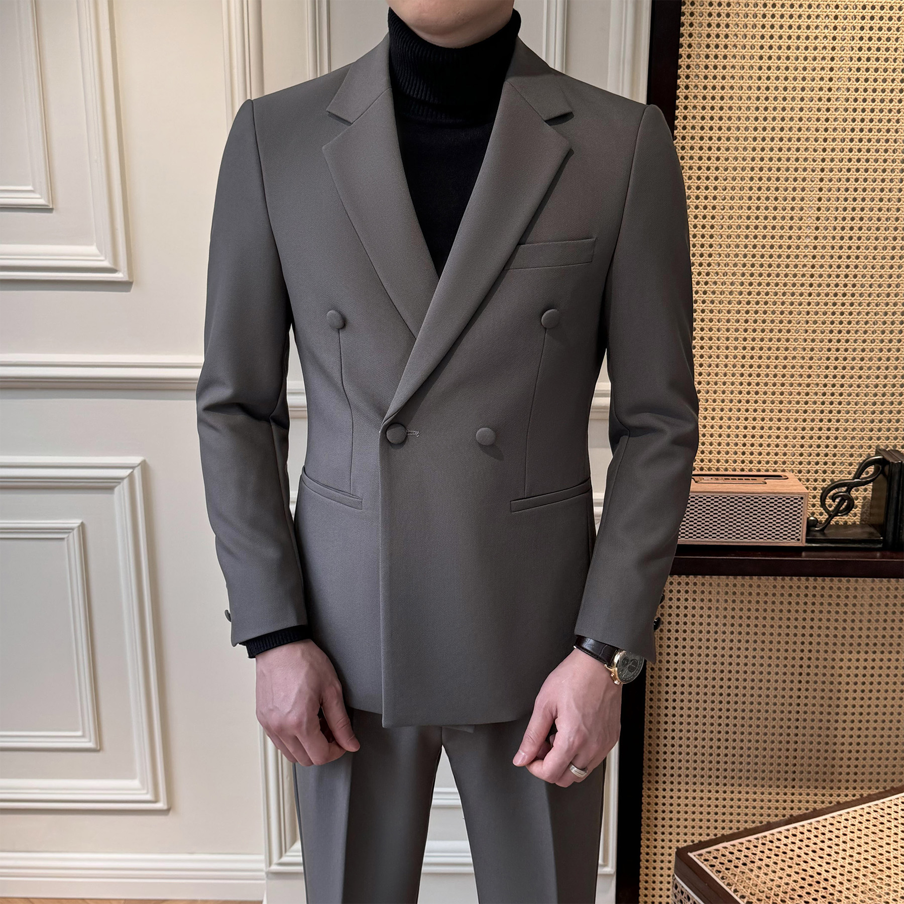 高档套装男士西服时尚痞帅修身两件装高级休闲商务双排扣外套西装
