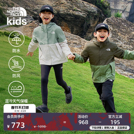 北面儿童冲锋衣男童女童外套Antora防水硬壳抓绒保暖TheNorthFace