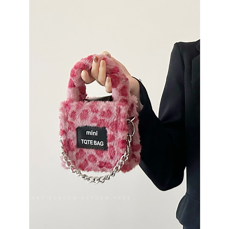 陈慕家包包女2024秋冬新款可爱毛毛绒泰迪百搭链条迷你斜挎小方包