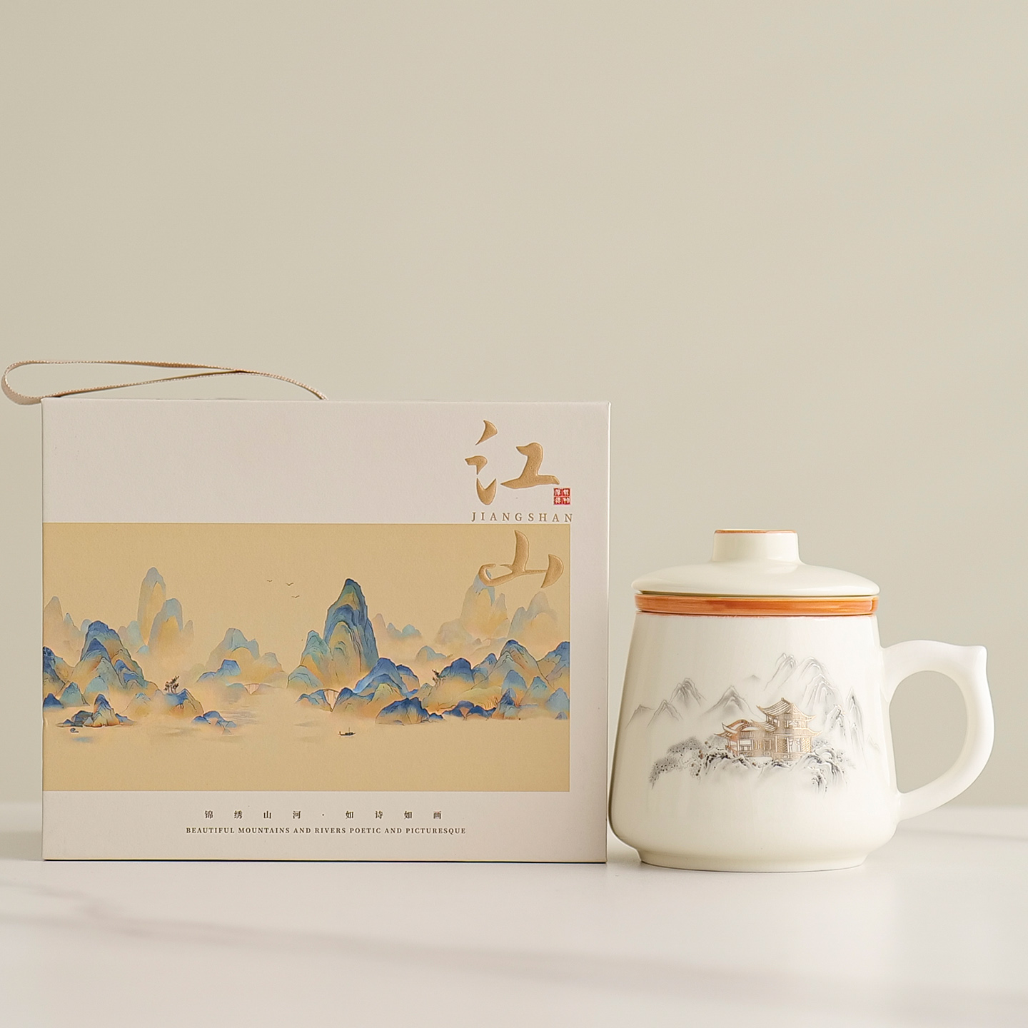 汝窑茶杯茶水分离陶瓷办公杯泡茶杯马克杯子创意伴手礼品定制logo