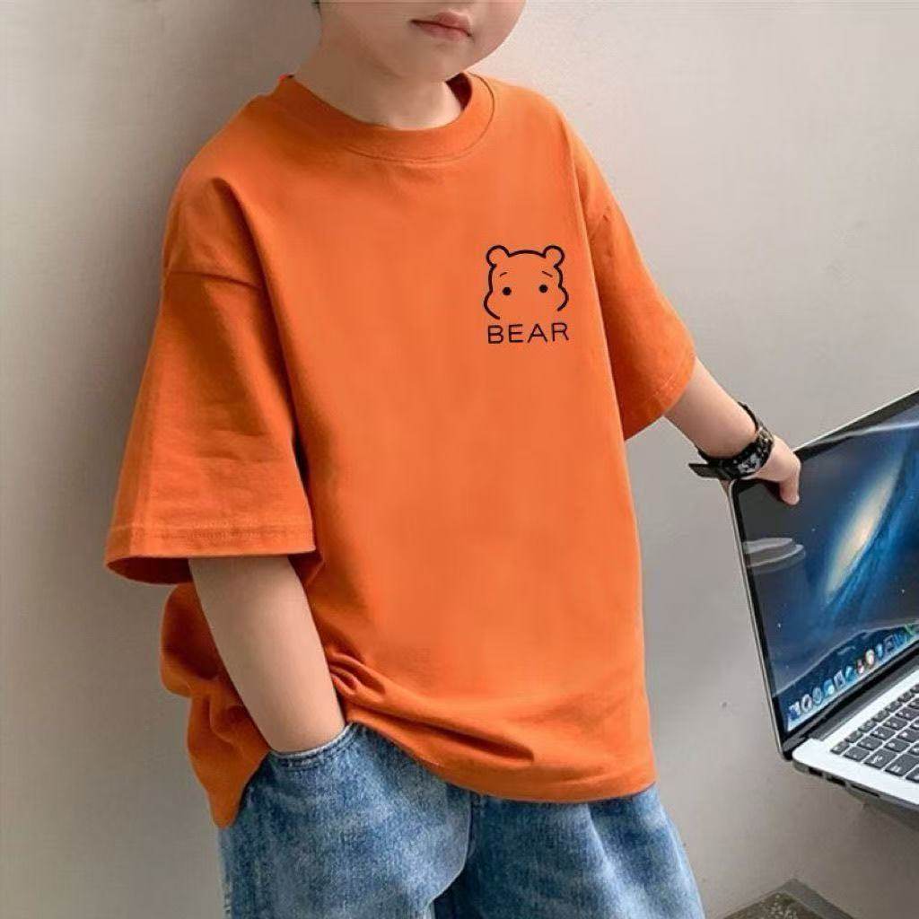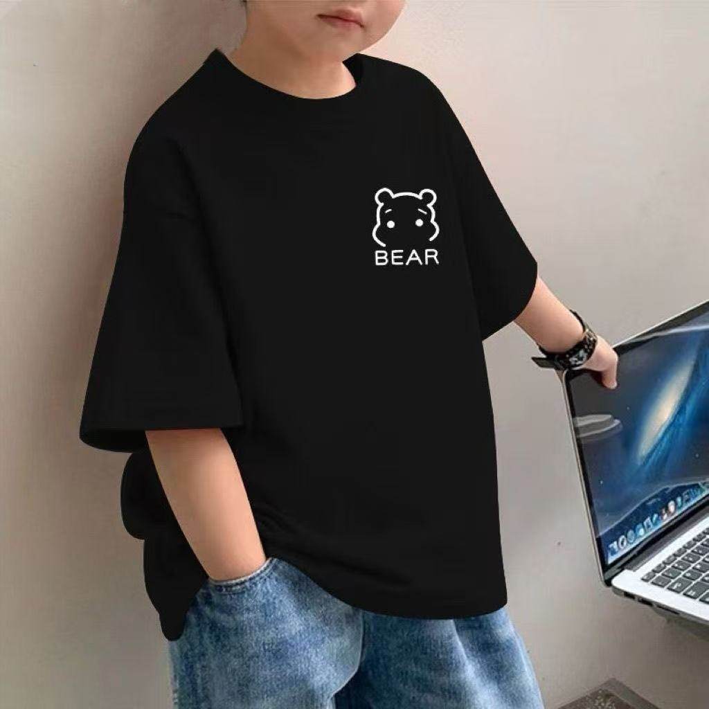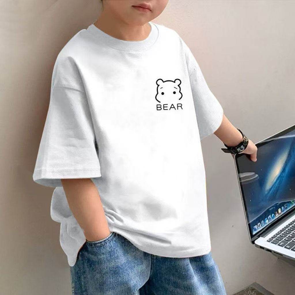 纯棉儿童男童夏季简约短袖中大童2025新款洋气小熊T恤宽松衣