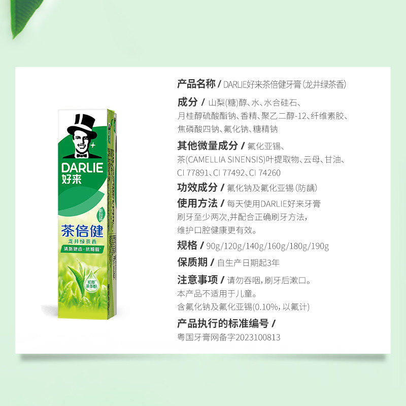 好来黑人超白竹炭深洁牙膏190克g茶倍健龙井绿茶茉莉白茶正品囤货