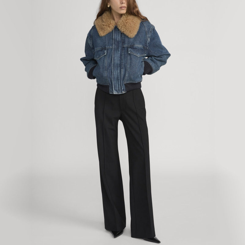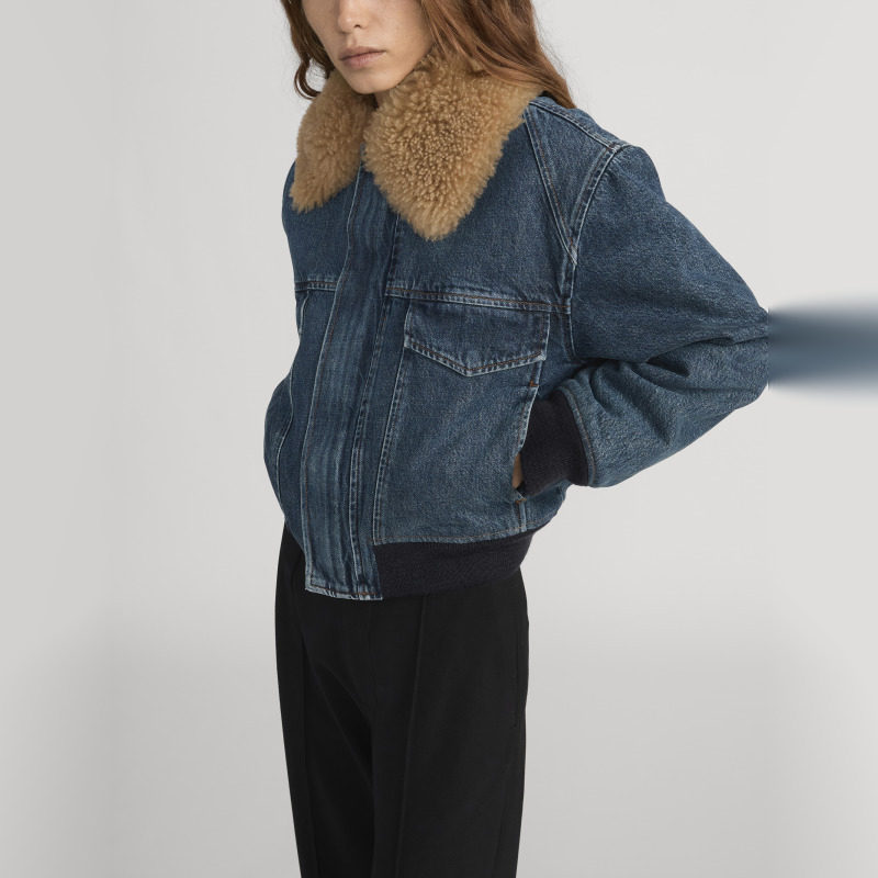 【2026早春新款】FRAME女士时尚牛仔毛领翻领短款外套上衣夹克