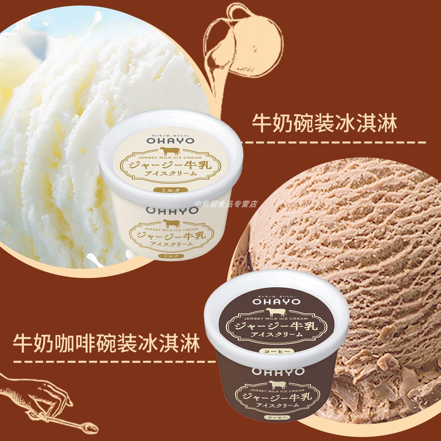 日本进口ohayo浓厚生牛乳冰淇淋碗装牛奶冰激凌咖啡欧蕾网红雪糕