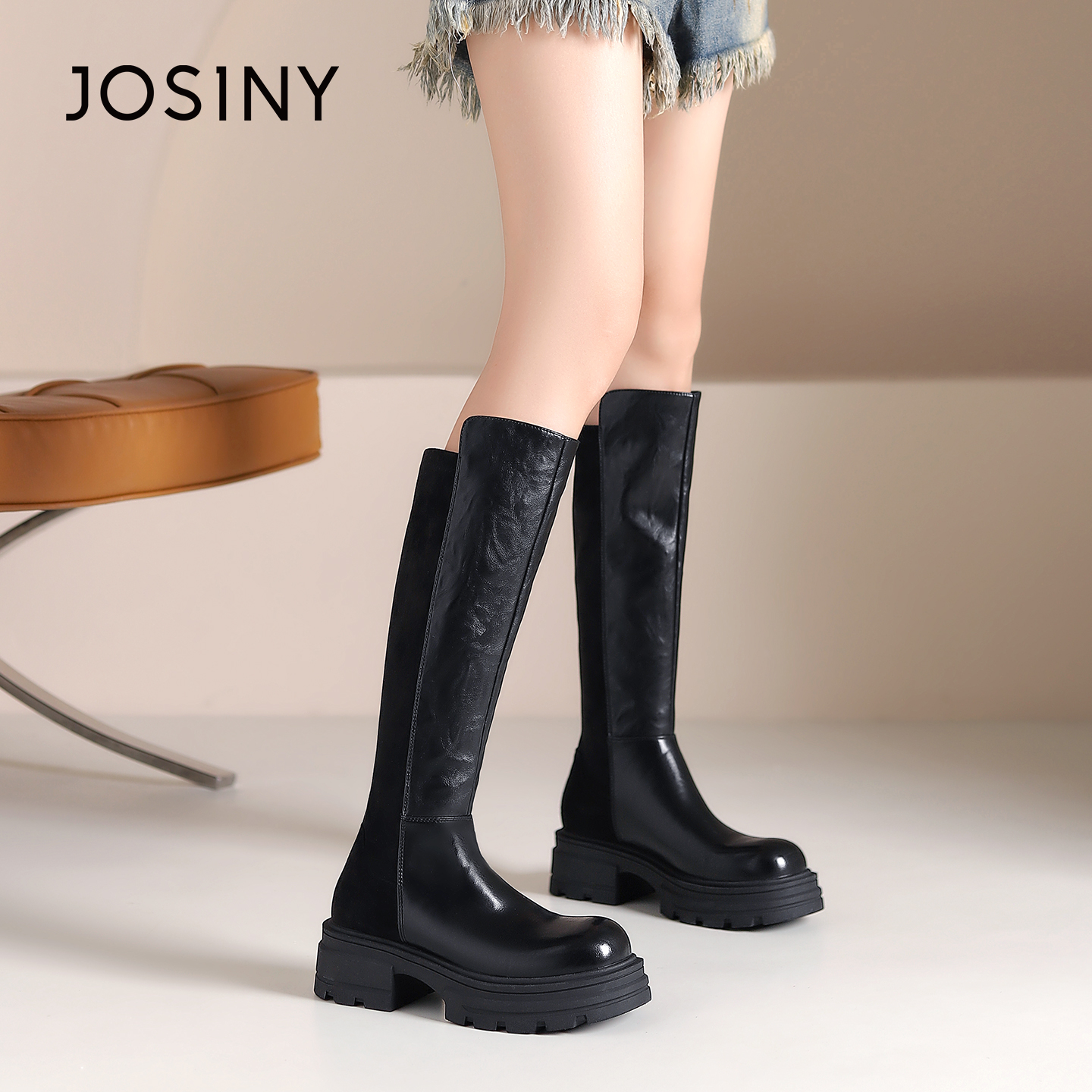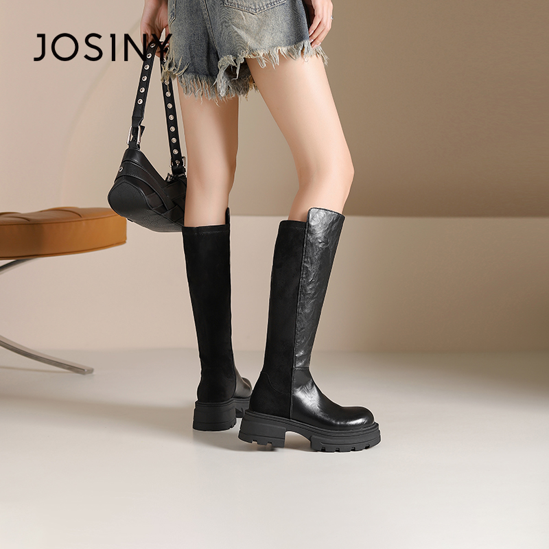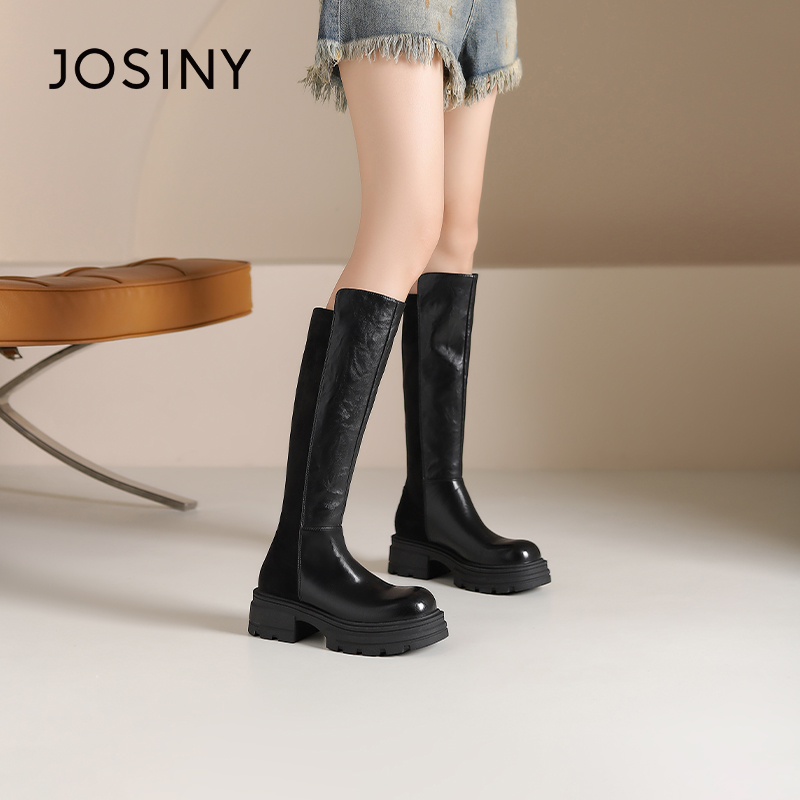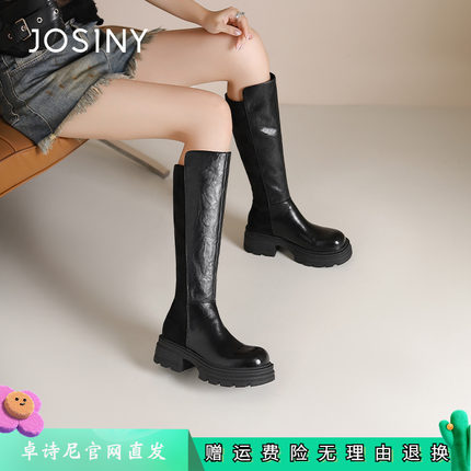 卓诗尼2025秋冬新款厚底骑士靴女鞋单里高筒靴子长靴百搭粗跟圆头