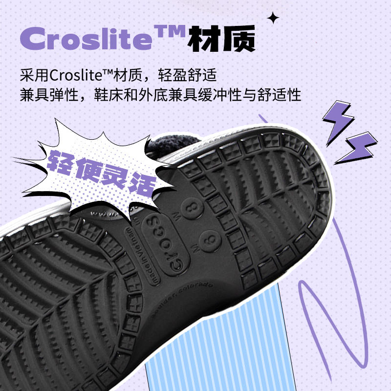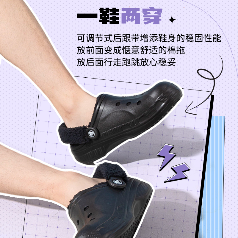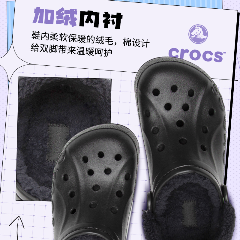 Crocs卡骆驰男女鞋加绒洞洞鞋贝雅暖绒Clog棉拖简约时尚休闲鞋