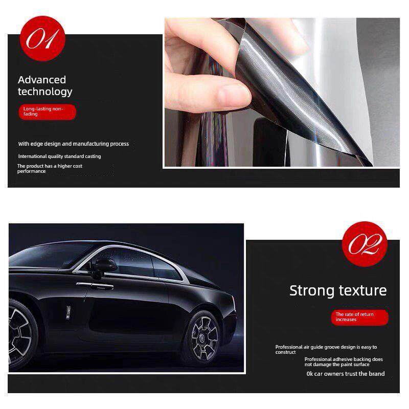汽车PET亮黑膜车窗条框镀铬条前唇黑化轮眉门把手行李架侧裙贴膜