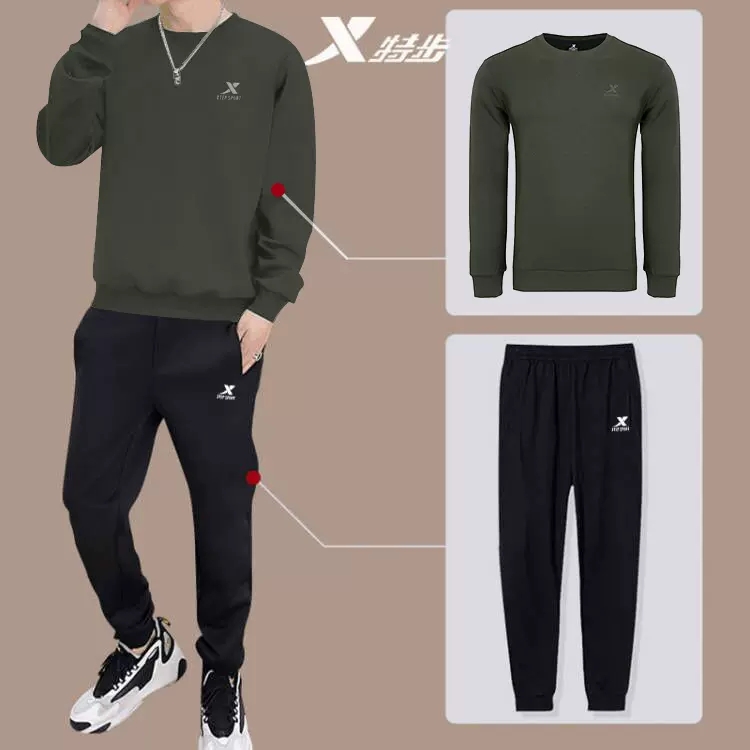 特步男套装秋季长袖运动卫衣套装男官方旗舰店正品春秋跑步健身服