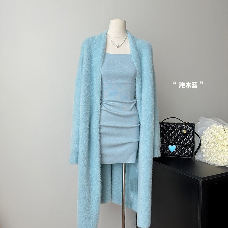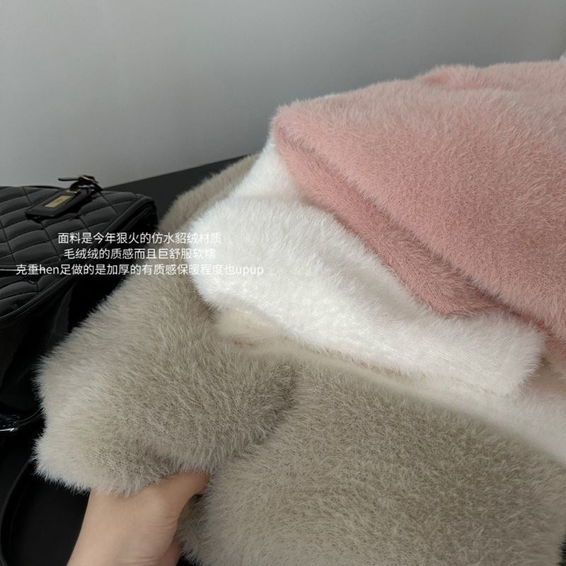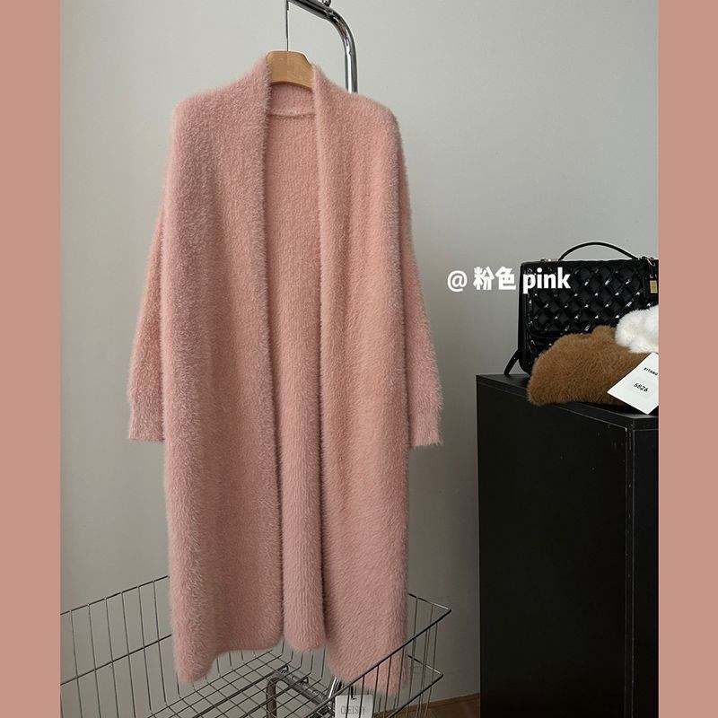 2024秋冬长款仿水貂绒毛衣开衫女宽G松慵懒风加厚针织外套气质大