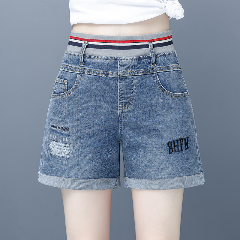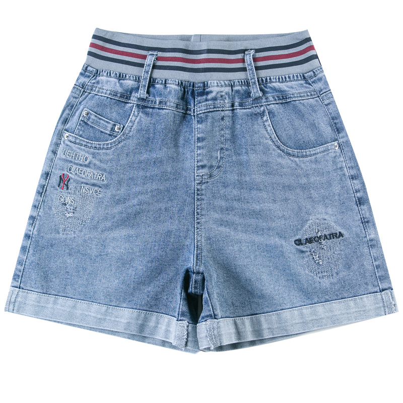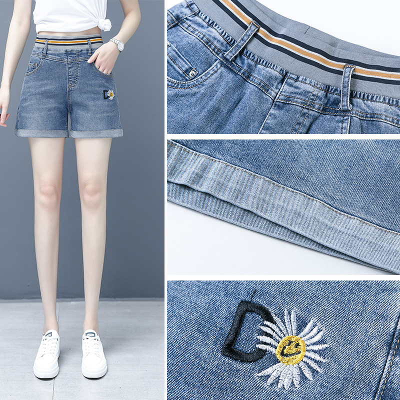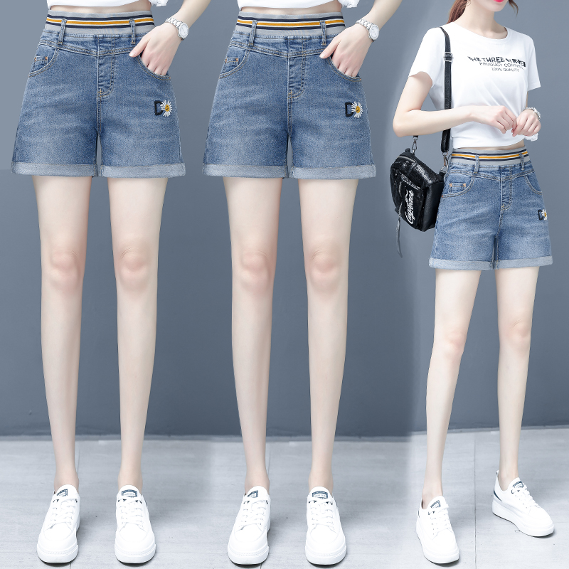 牛仔短裤女2025新款夏季小雏菊薄款阔腿宽松卷边松紧高腰大码裤子