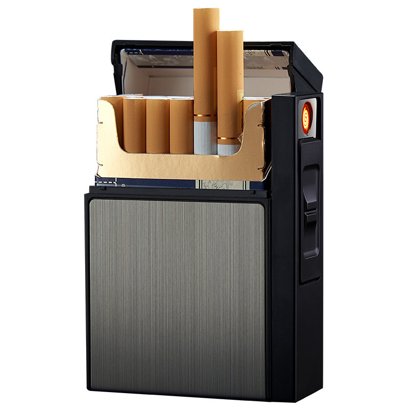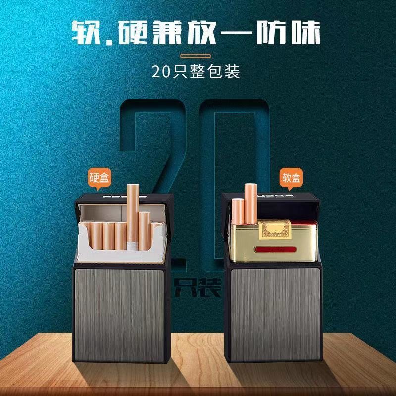 创意烟盒带打火机一体便携男20支装超薄高档铝合金软硬包充电防风