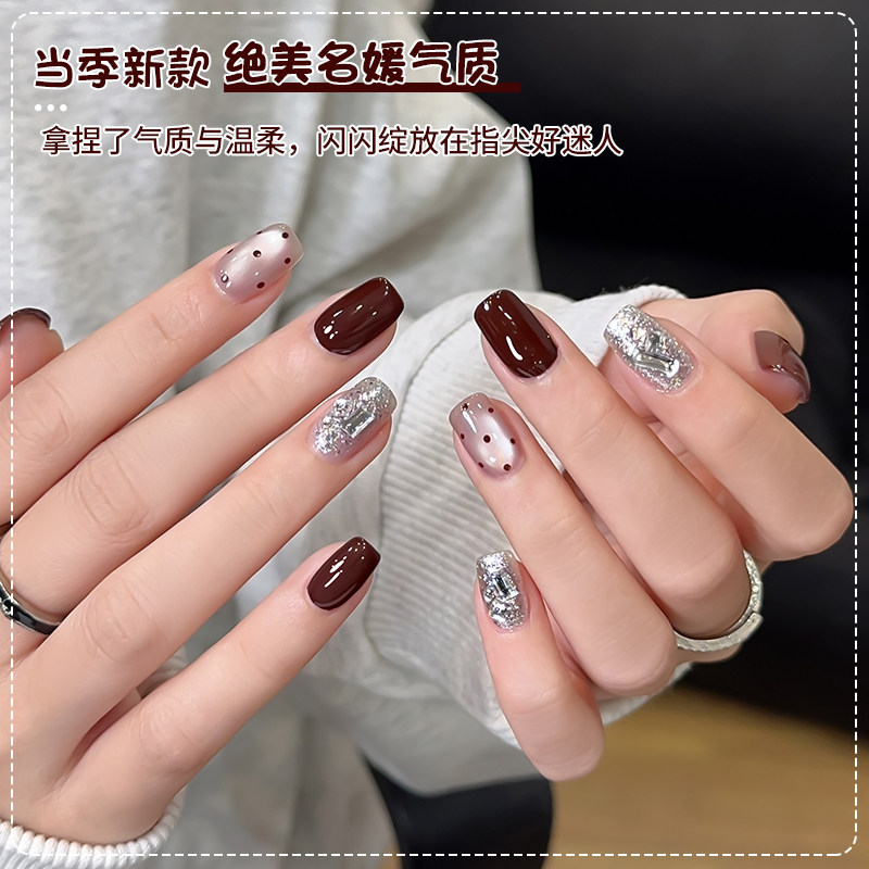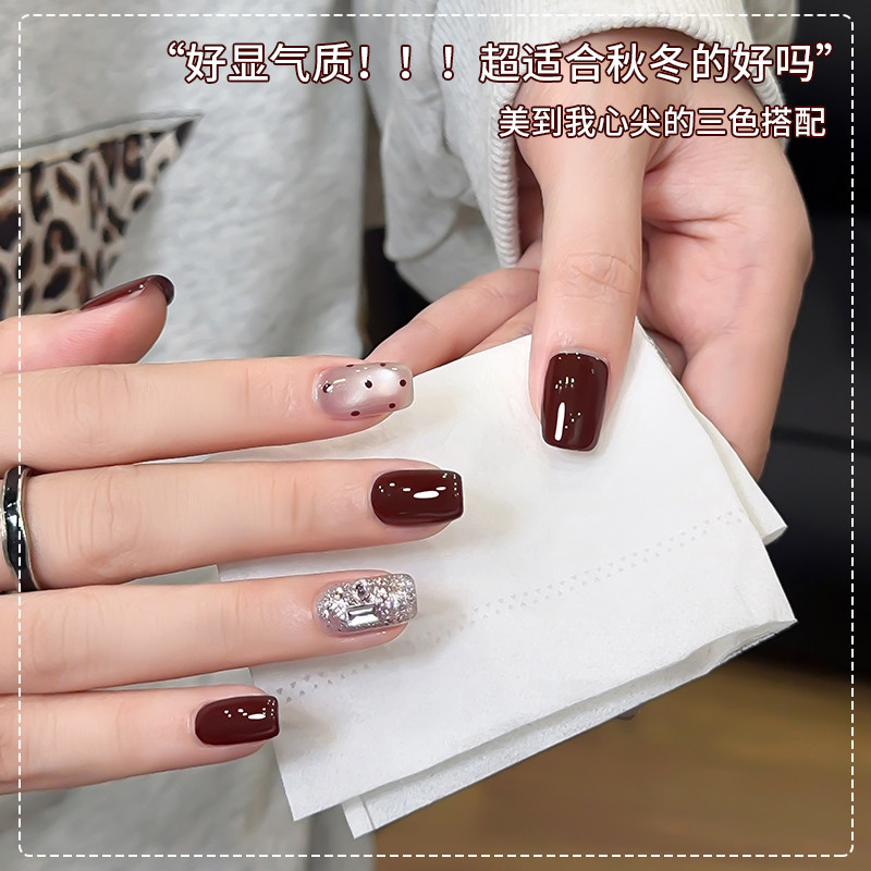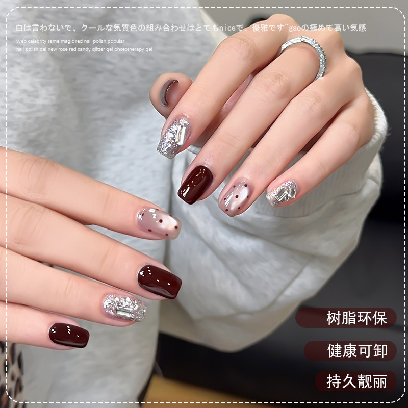 春夏酒红色指甲油胶2026年流行车厘子爆闪亮片猫眼套装美甲店专用