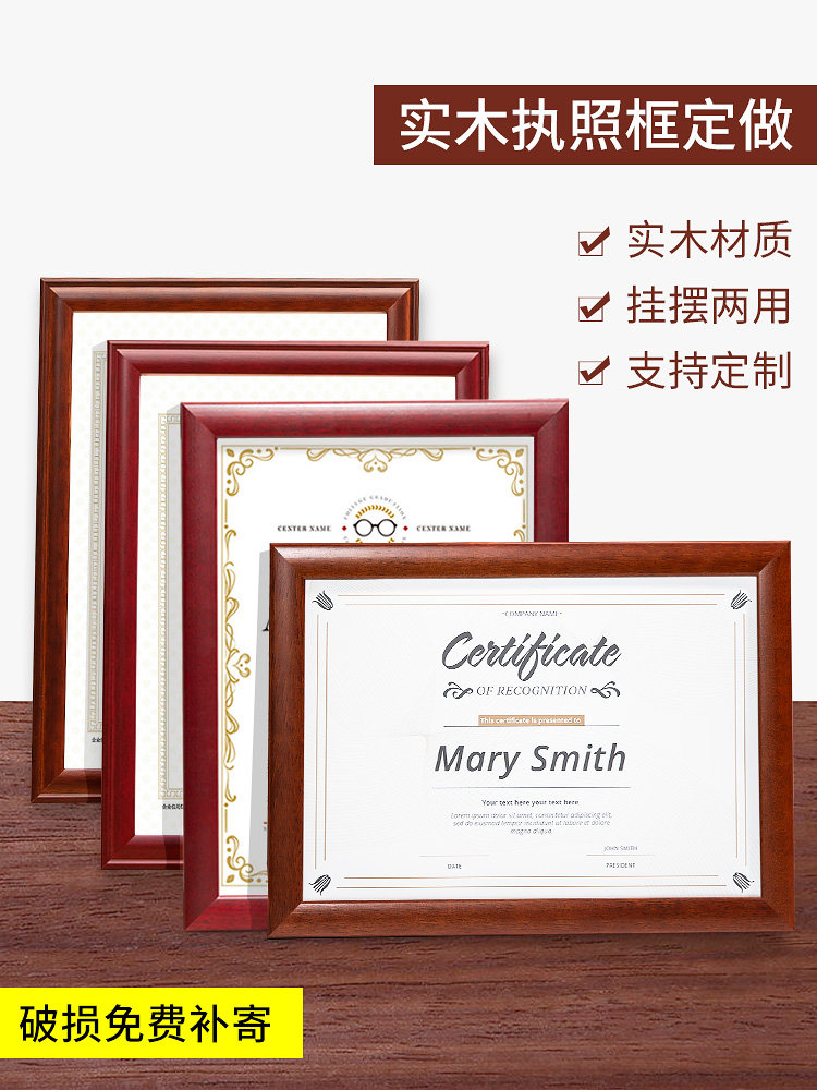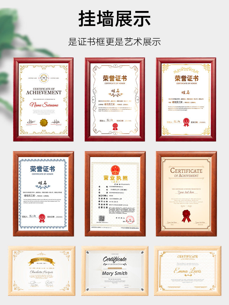 专利证书框挂墙A3营业执照裱框正本定制A4奖状证件展示架实木相框