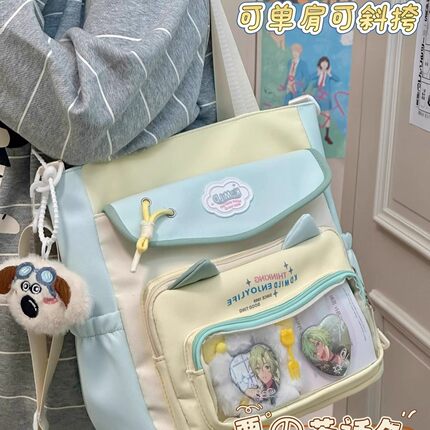 可爱学院风二次元百搭撞色大容量补课包女透明吧唧单肩包斜挎包