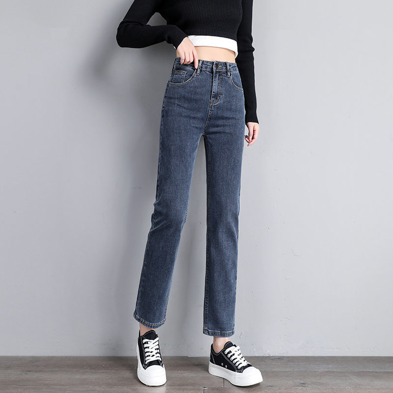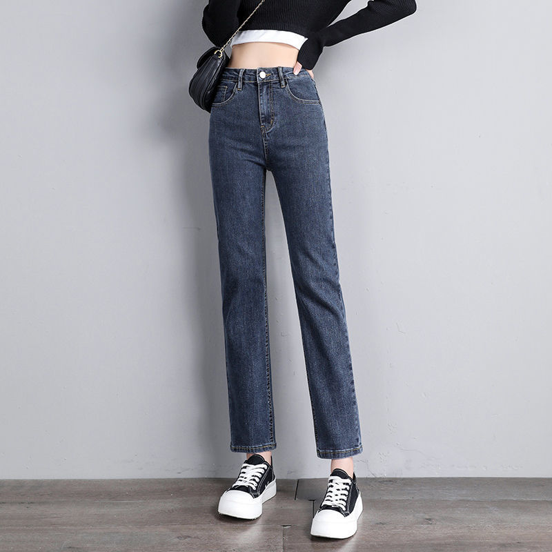 直筒裤小个子女春秋季高腰垂感牛仔裤2025年新款弹力修身烟管裤子