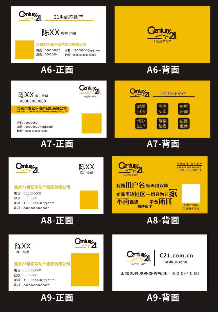 21世纪名片不动产中介买房卖房经纪人置业顾问二维码名片定做定制