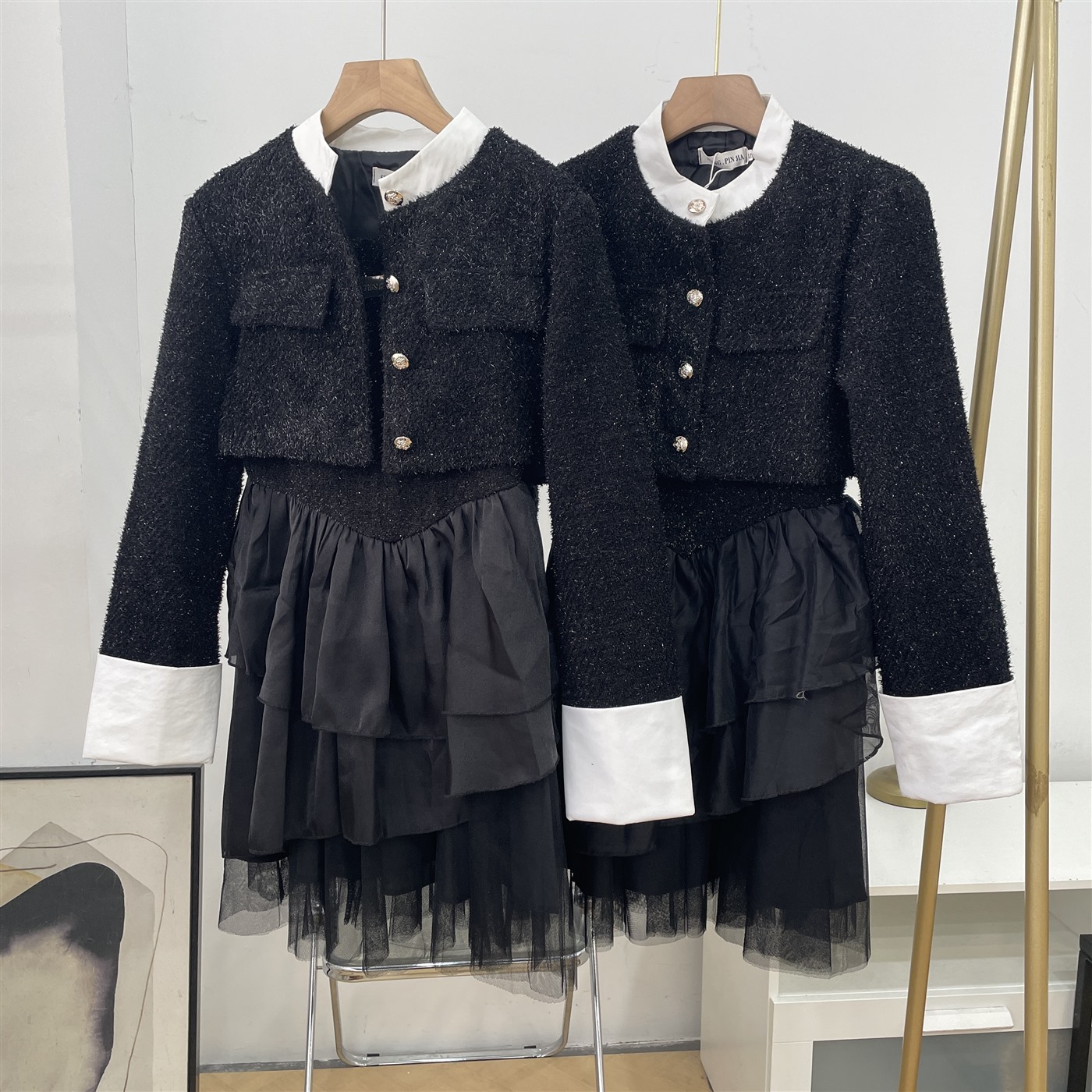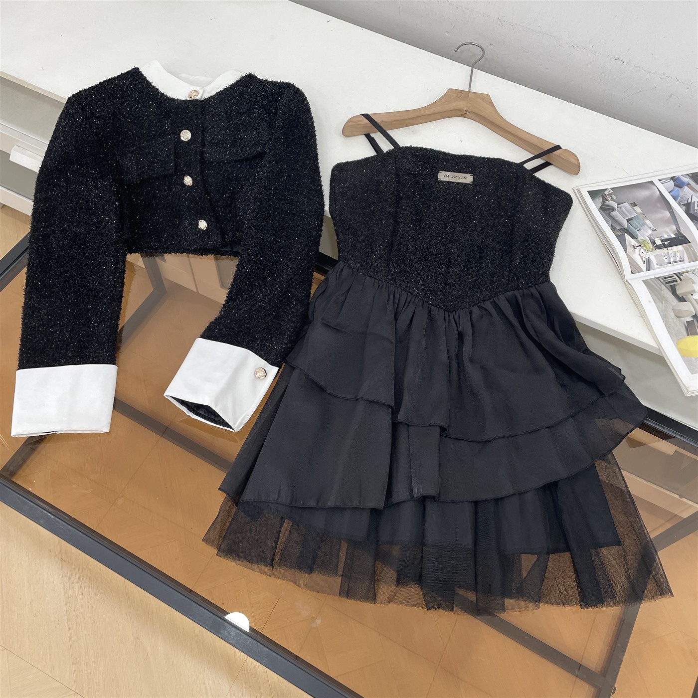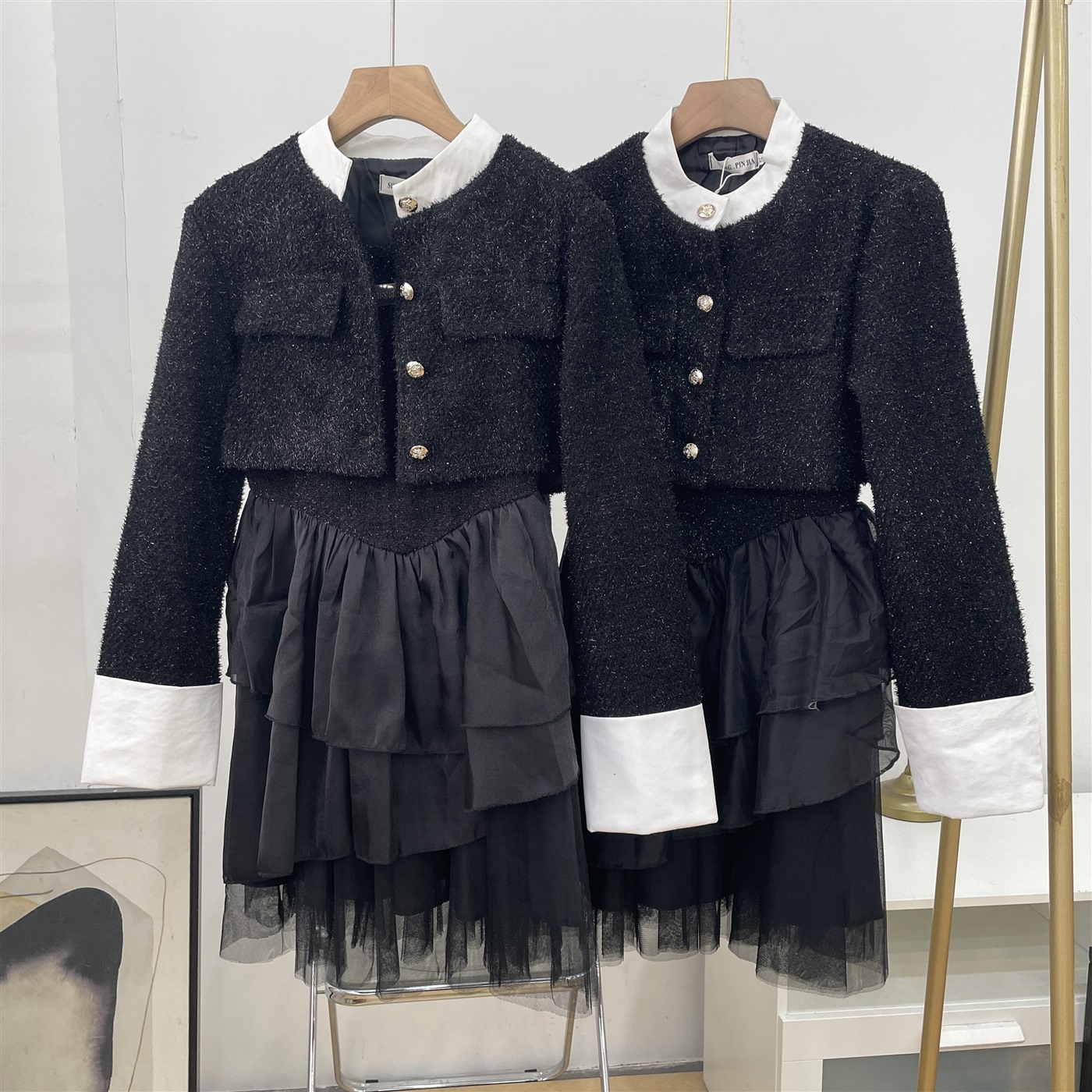 两件套2025秋季新款纯色吊带连衣裙搭宽松长袖上衣I#23