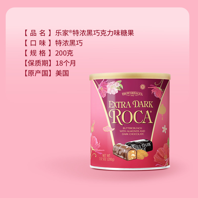 【新品推荐】Roca乐家美国进口扁桃仁太妃糖特浓黑巧味200g送礼
