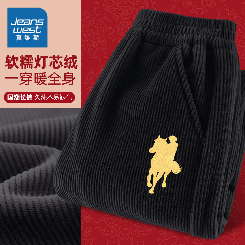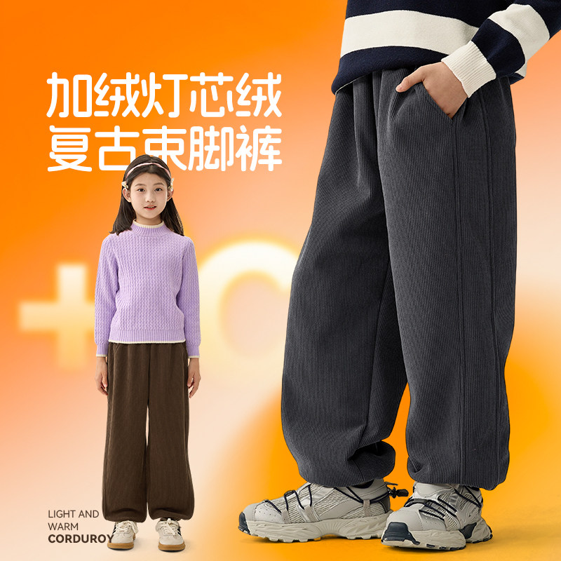 真维斯童装女童裤子冬加厚加绒中大童一体绒棉裤儿童新年灯芯绒裤