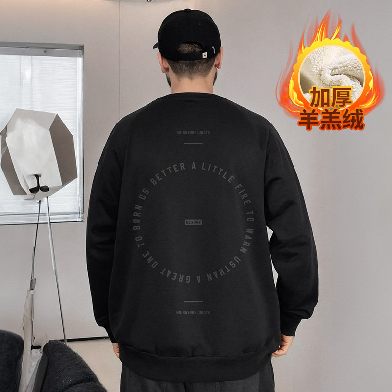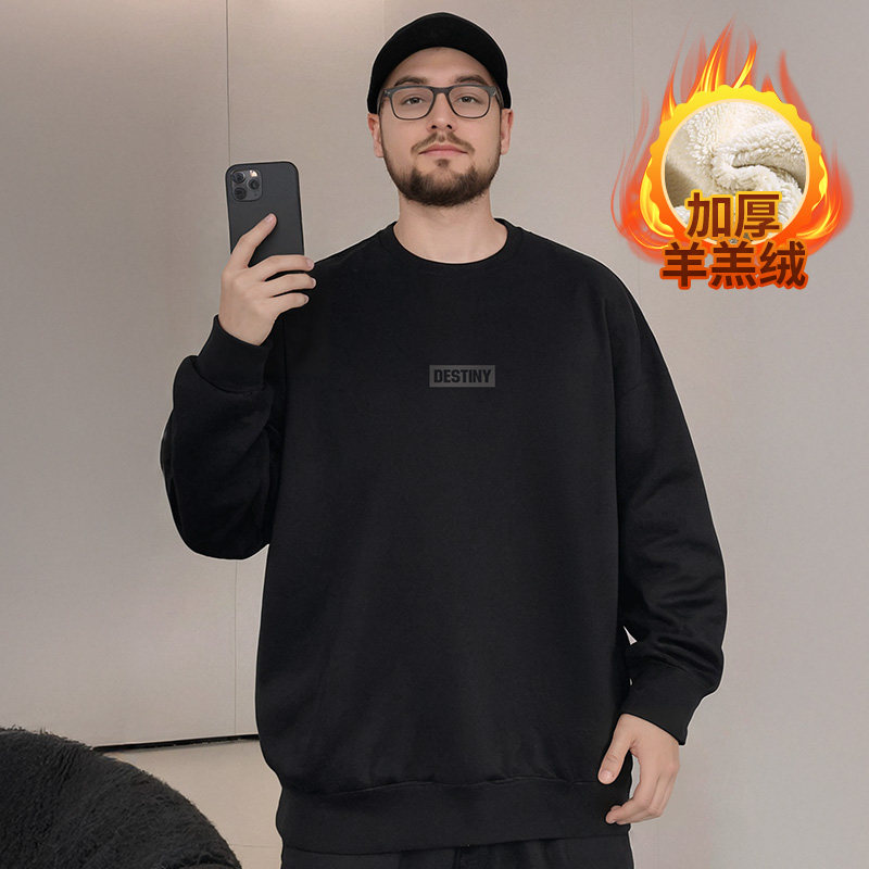 潮牌羊羔绒加绒加厚加肥加大码男装国潮圆领胖子卫衣男士秋冬外套