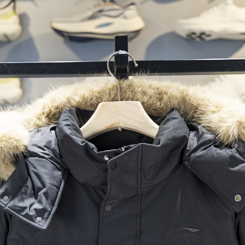 李宁中长款羽绒服男子2025冬季80%鸭绒保暖宽松连帽外套AYMV341