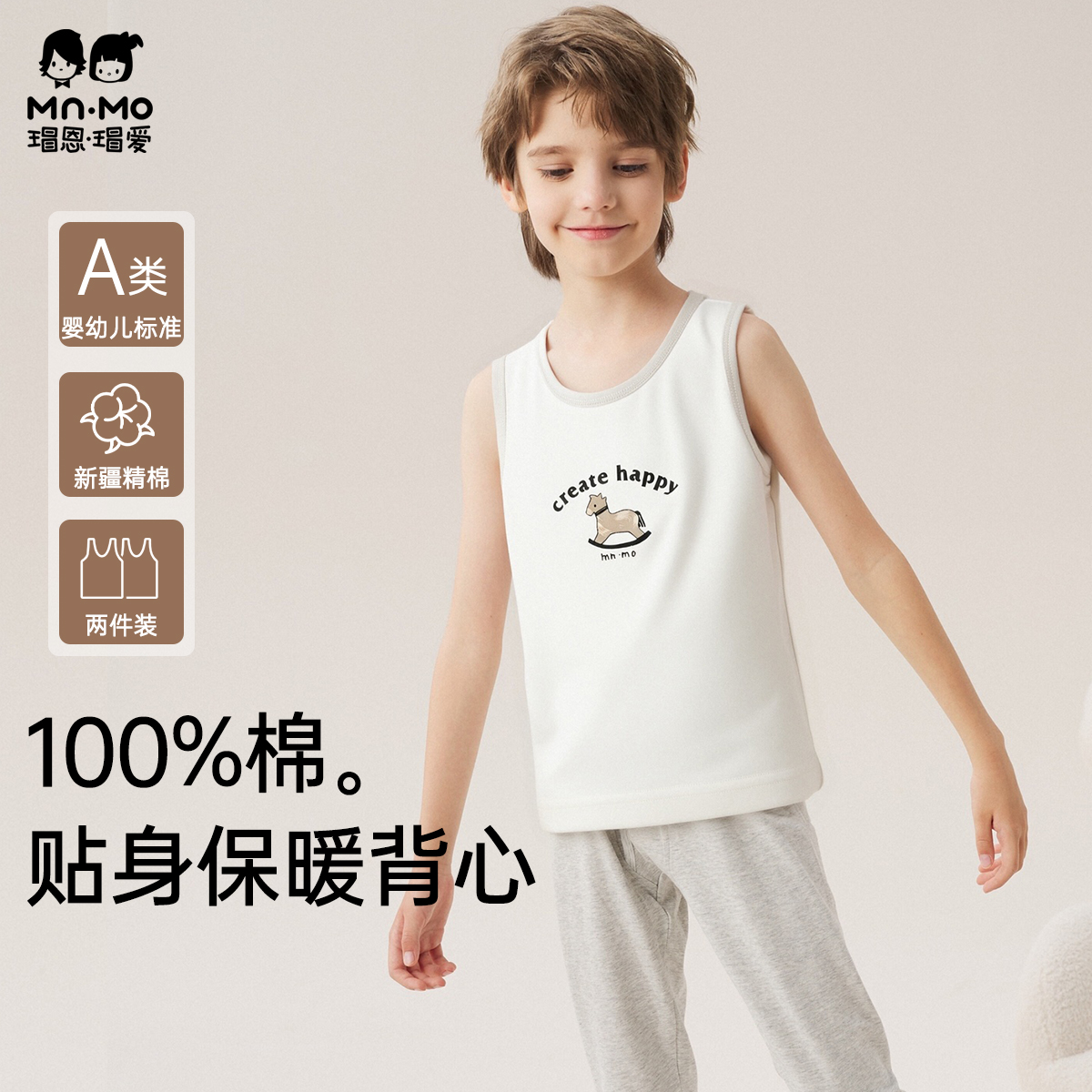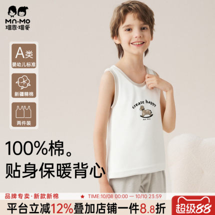 瑁恩瑁爱男童春秋夏纯棉无袖背心