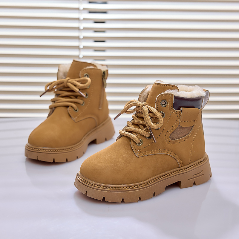 儿童马丁靴加绒加厚男童大黄靴秋冬款宝宝棉靴子防滑女童雪地靴子