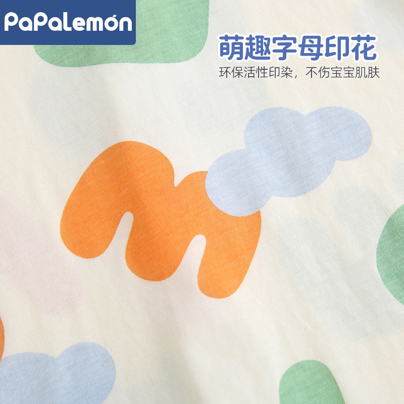 柠檬爬爬婴儿内衣套装夏季纯棉薄款宝宝长袖分体睡衣夏装童趣字母