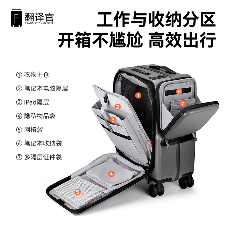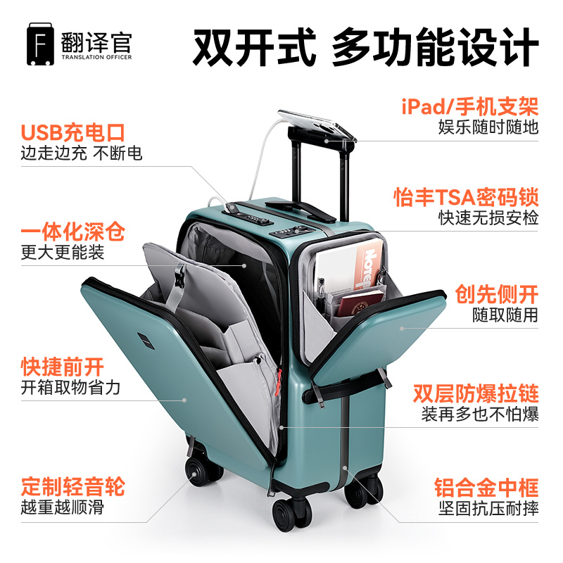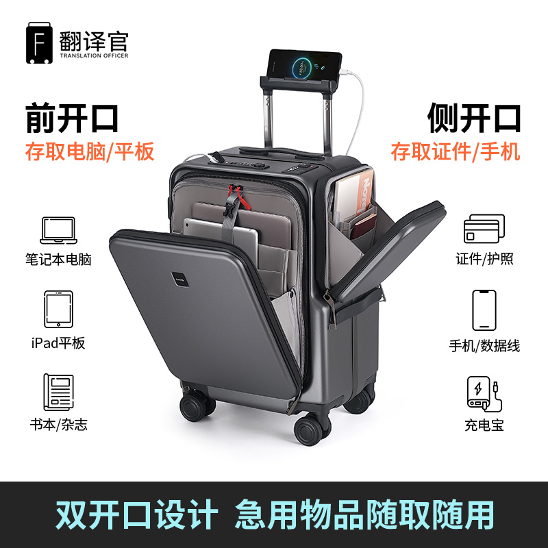翻译官多功能前侧开盖拉杆行李箱登机男女20寸小密码手提差旅耐用