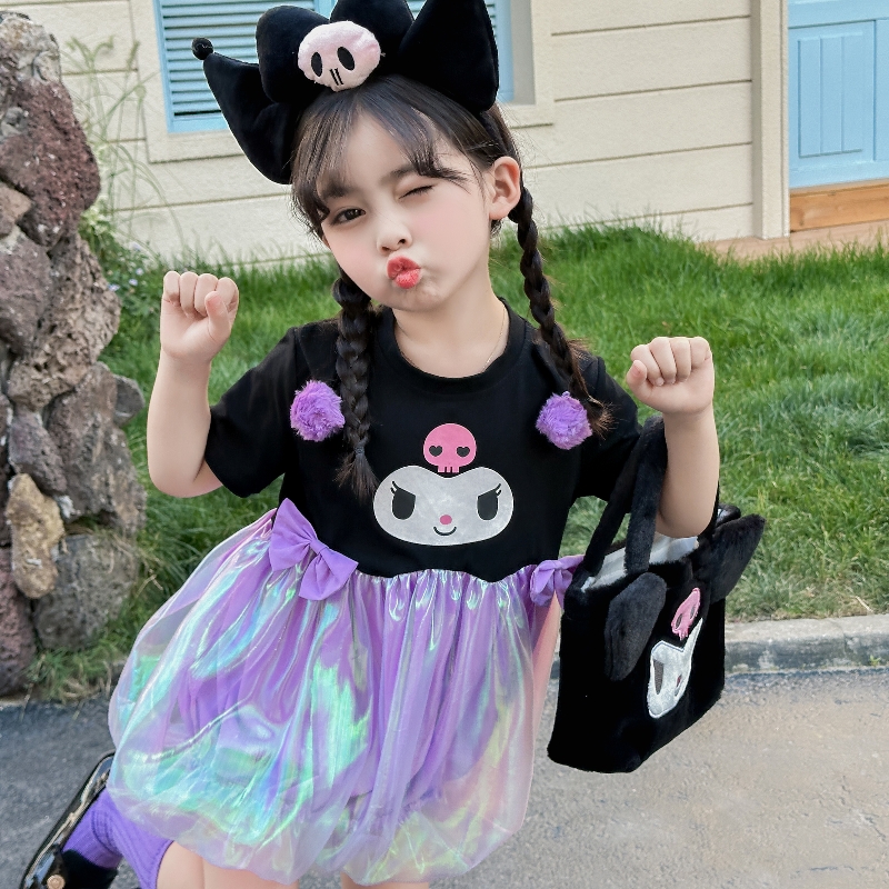 ins夏款女童宝宝库洛米立体耳朵连衣裙儿童萌趣卡通拼接娃娃裙子