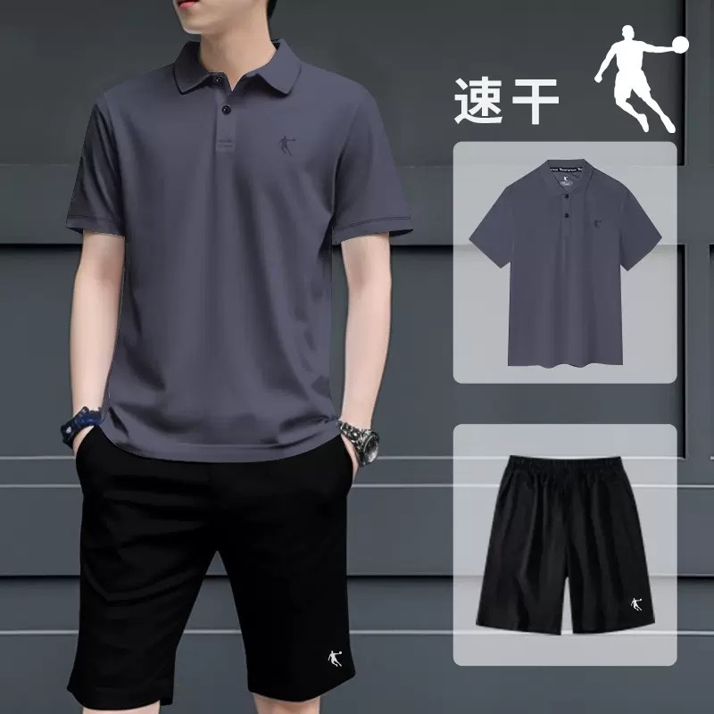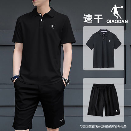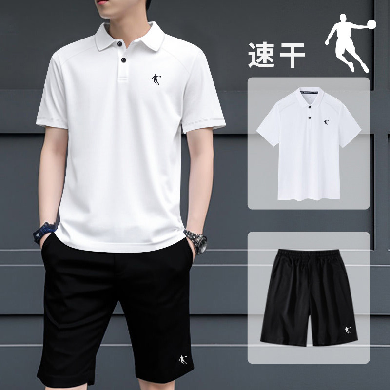 乔丹运动套装男2025新款夏季Polo短袖T恤五分短裤男士透气两件套