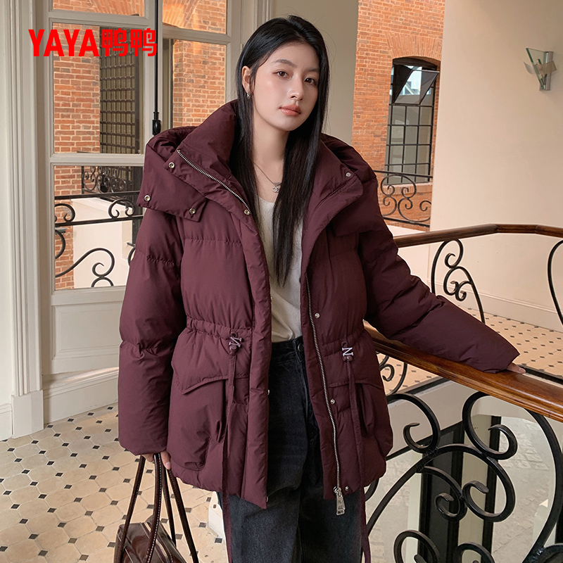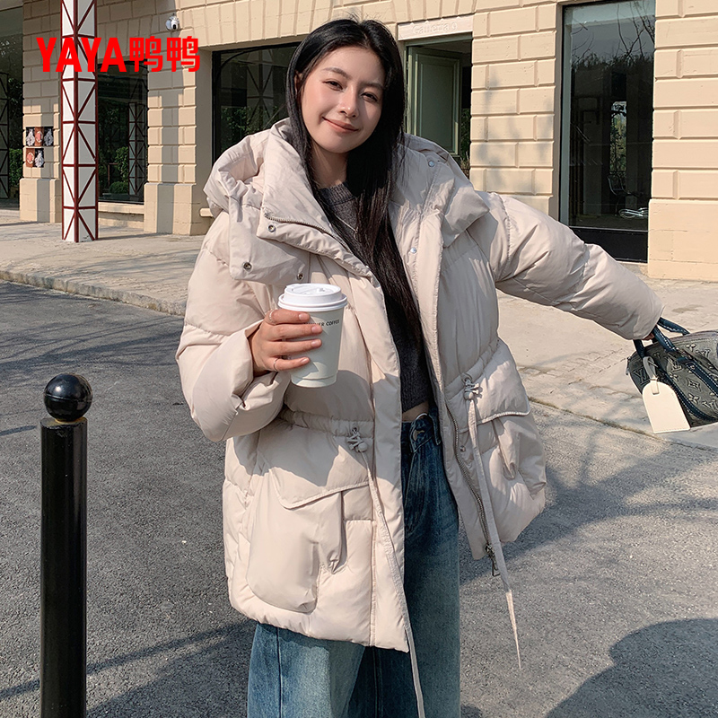 鸭鸭韩版2024年冬季新款品牌中长款羽绒服女休闲加厚收腰连帽保暖