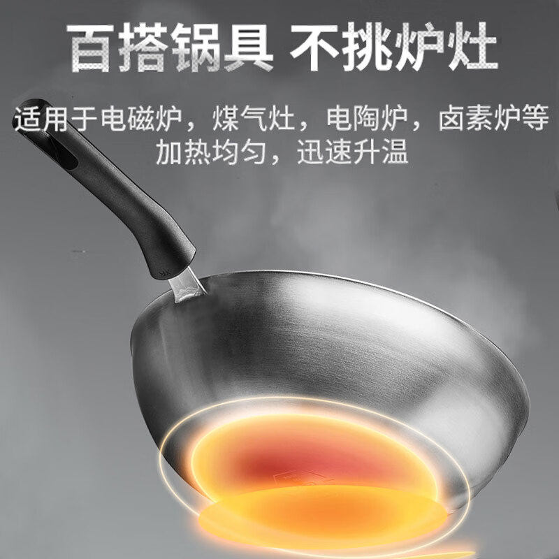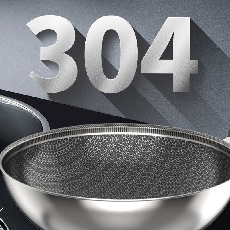 爱仕达晶刚甲炒锅304不锈钢炒锅蜂窝防粘炒菜锅燃气灶电磁炉锅