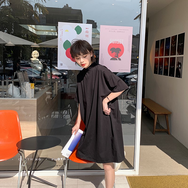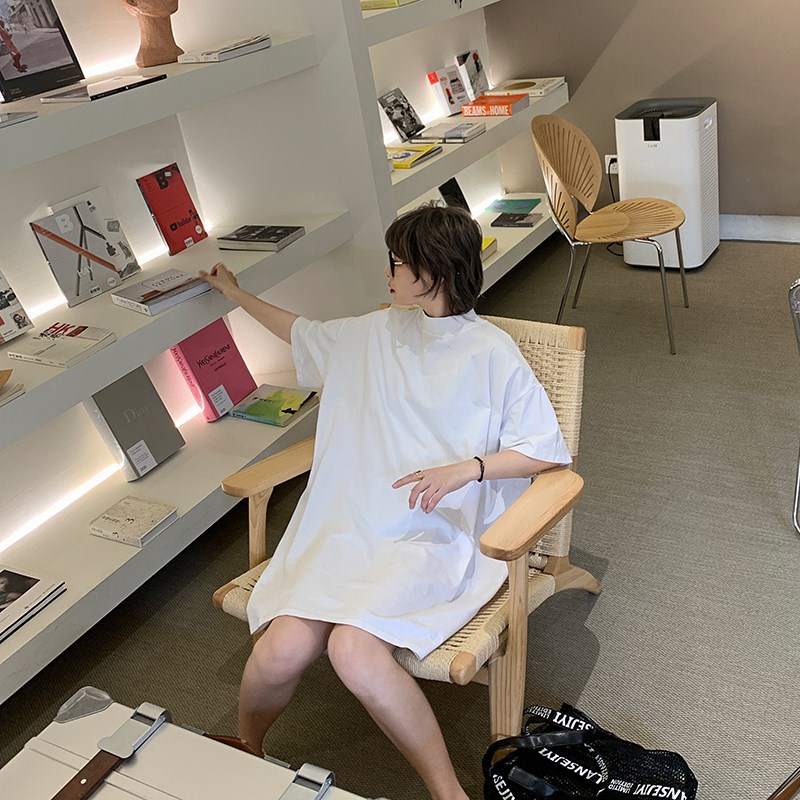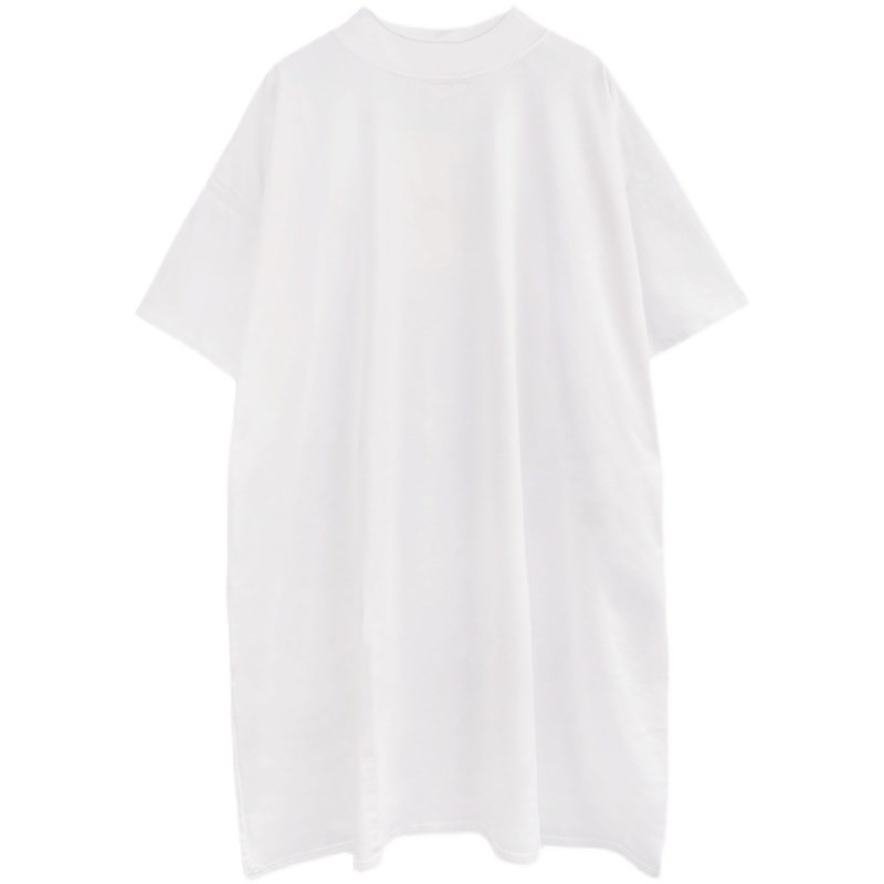 2024夏季新款纯棉半高领t恤女短袖洋气大版宽松显瘦中长款打底衫T