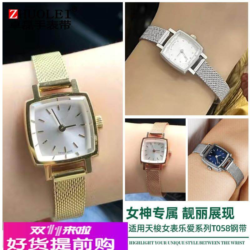 适配原厂1853米兰网带9mm女适配Tissot天梭乐爱钢带t058表链T058.