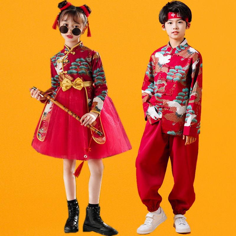 元旦中国小梦娃舞蹈服装男女童幼儿园演出服喜庆打鼓开门红表演服